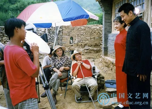 1996年,李前宽、肖桂云执导的电影《红盖头》在北京外景地工作照