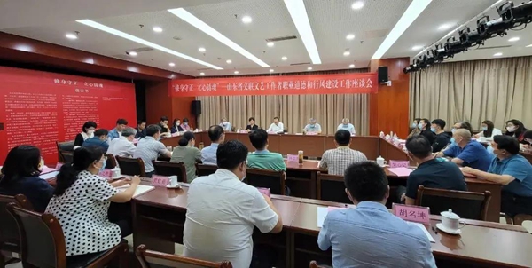福建省文联召开文艺工作者职业道德建设委员会会议暨职业道德和行风建设工作座谈会,会议围绕文艺界行业行风建设存在的问题,深入交流研讨加强对文艺工作者明德修身的引导、推进文艺界行业行风建设治理的举措。