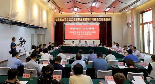甘肃省文联召开“修身守正 立心铸魂——甘肃省文联文艺工作者职业道德和行风建设工作座谈会”,会上文艺家代表就加强文艺工作者职业道德建设、推进文艺界行风建设等问题进行交流发言。大家一致表示,文艺工作者要遵守党纪国法,恪守职业道德和行业规范,讲品位讲格调讲责任,以实际行动践行“爱国、为民、崇德、尚艺”的文艺界核心价值观,为繁荣发展社会主义文艺事业作出新的更大贡献。