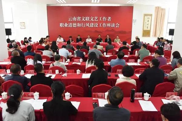 云南省文联召开文艺工作者职业道德和行风建设工作座谈会,会议要求,云南省全省文联系统要大力推进文艺工作者职业道德和行风建设,坚决抵制违法违规、失德失范等不良风气,弘扬正气、树立新风,要切实履行新时代文艺工作者培根铸魂的崇高职责,奋力推动新时代云南文艺事业及文娱行业高质量健康发展。