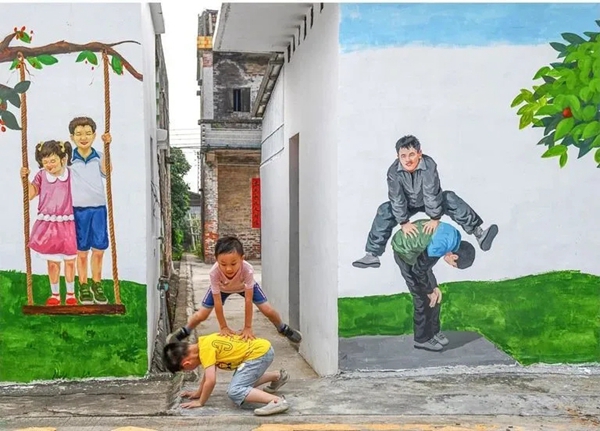石板沙村位于广东省江门市睦州镇东面,是西江下游极具疍家风情的一个江心小岛。近年来,石板沙村紧紧围绕“一岛一村一世界”主题,以“疍家文化”为核心,盘活石板沙渔耕文化,注入疍家文化元素,打造疍家墙画的文化街区。目前,石板沙已有30余幅墙绘,分布在石板沙村几条主要的街巷内,充分展示了疍家原住民的建筑和生活方式。如今的石板沙村已成为美丽乡村建设与乡村旅游示范村。