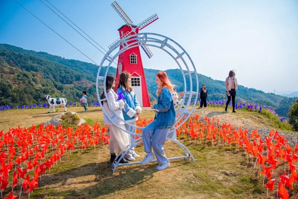 2021年1月17日,福建省永春县桃城镇上沙村游乐园里,游客们在尽情游玩。自2019年年底以来,上沙村通过土地流转,利用荒地建成山顶乡村游乐园,使上沙村从寂寂无名的穷乡僻壤变为热门的文旅打卡地。