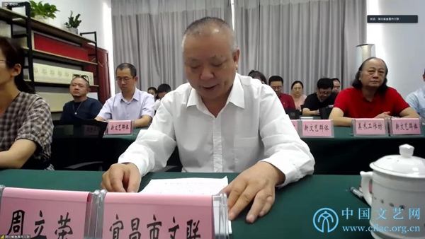9月28日,全国文联系统新文艺群体职称评审工作推进会在京举行。图为湖北省宜昌市文联党组书记、主席周立荣通过“文艺云·在线视频会议培训系统”做经验交流。