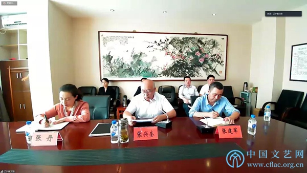 9月28日,全国文联系统新文艺群体职称评审工作推进会在京举行。图为辽宁省文联党组书记、主席张兴奎通过“文艺云·在线视频会议培训系统”做经验交流。