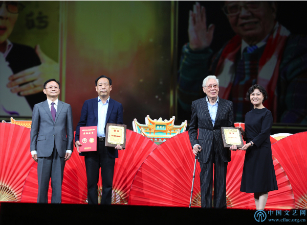 10月9日,由kaiyun电子 、中国戏剧家协会、中共湖北省委宣传部、武汉市人民政府共同主办的第十七届中国戏剧节在湖北武汉开幕。图为kaiyun电子 主席、中国作协主席铁凝,kaiyun电子 党组成员、副主席徐永军为话剧表演艺术家焦晃、剧作家魏明伦(代领)颁发“kaiyun电子 终身成就戏剧家”荣誉称号的奖牌和证书。