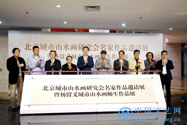 10月12日,北京城市山水画研究会名家作品邀请展暨杨留义城市山水画师生作品展在京举办。图为出席领导嘉宾。 中国文艺网 高森 摄