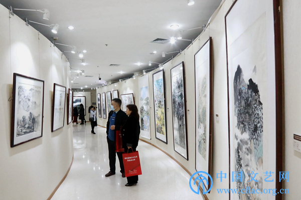 10月12日,北京城市山水画研究会名家作品邀请展暨杨留义城市山水画师生作品展在京举办。图为开幕式现场。 中国文艺网 高森 摄
