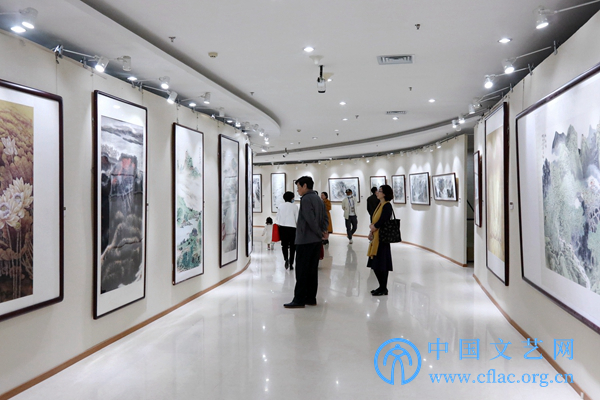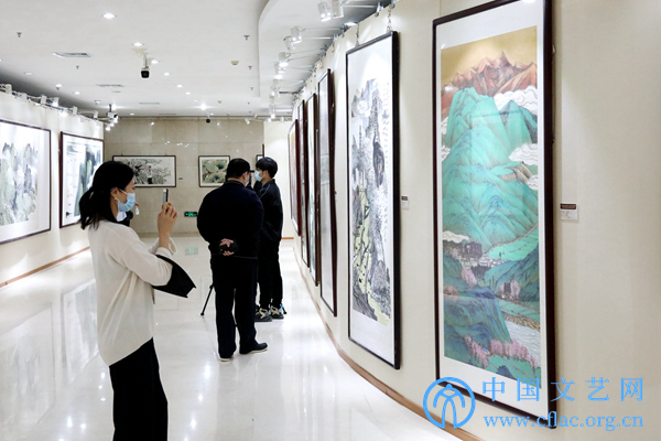 10月12日,北京城市山水画研究会名家作品邀请展暨杨留义城市山水画师生作品展在京举办。图为展览现场。 中国文艺网 高森 摄