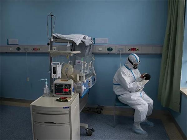 2020年3月16日,武汉儿童医院新生儿内科NCP隔离病区,护师赵佩哄着患儿,当起了临时妈妈。