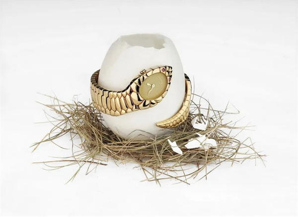 “灵蛇”这种具有颠覆性审美的元素是这款手表品牌的标志之一。在很多神话故事中,蛇是诱惑的象征。照片以蛇破壳而出的形象,映射一种难以抵制的诱惑从此开始,同时隐喻这个品牌的手表对热衷时尚的人们具有无穷的吸引力。