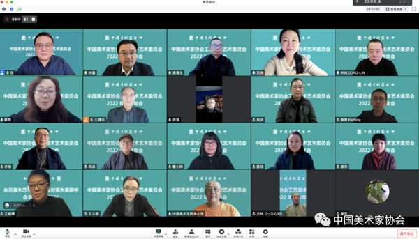 2022年12月17日,中国美术家协会工艺美术艺术委员会线上召开2022年工作年会。会议主题为“中国形象的时代感建构与时代性表达:学习贯彻党的二十大精神,加强新时代工艺美术人才培养。”中国美协工艺美术艺委会主任潘鲁生,副主任王建中、许奋、吴小华、陈青、滕菲,委员王立德、王檬檬、支林、余强、林栋、周庆、周武、曹小鸥、解勇出席会议。会议由工艺美术艺委会秘书长孙磊主持。