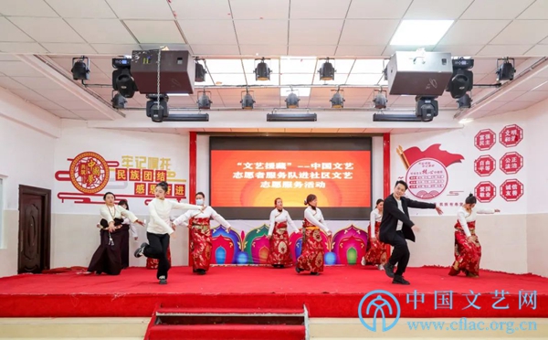 杭州市文艺两新发展促进会、杭州新青年歌舞团股份有限公司的文艺志愿者服务队和蒙古族青年歌手、“最美志愿者”获得者、中国文艺志愿者协会理事乌兰图雅共同表演歌舞《点赞新时代》。(朱旭洁摄)
