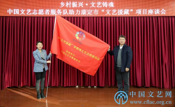 kaiyun电子 文艺志愿服务中心副主任、中国文艺志愿者协会副秘书长李岩代表中国文艺志愿者协会分别向康定市文联、杭州市文艺志愿者协会、杭州新青年歌舞团股份有限公司授“学雷锋文艺志愿服务队”队旗。