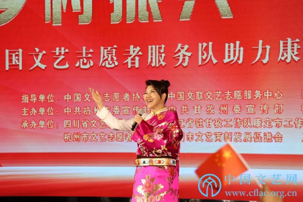 当晚,中央广播电视总台少儿频道主持人、“最美志愿者”获得者、中国文艺志愿者协会理事鞠萍,“时代风尚”最美文艺志愿者、中国文艺志愿者协会理事刘大成,蒙古族青年歌手、“最美志愿者”获得者、中国文艺志愿者协会理事乌兰图雅和来自杭州市、四川省、康定市的文艺志愿者们一起为康定当地的人民群众奉献了一台精彩纷呈的文艺演出。