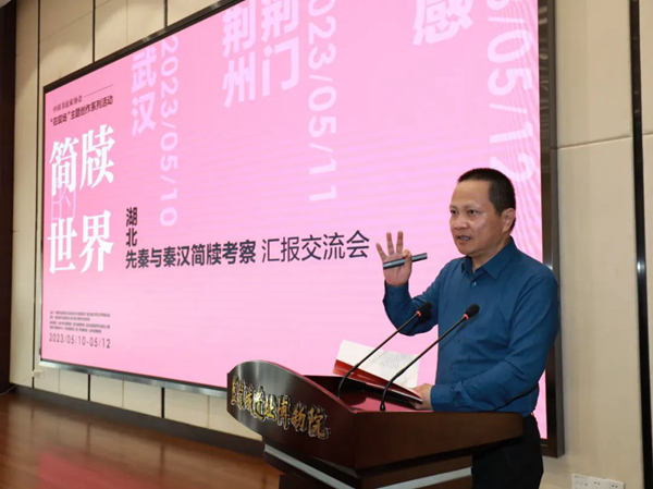 5月12日,由中国书协、湖北省文旅厅、湖北省文联主办,湖北省书协、湖北省文物考古研究院承办的中国书协“在现场”主题创作系列活动——“简牍的世界:湖北先秦与秦汉简牍考察”汇报交流会在武汉盘龙城遗址博物院学术报告厅举行。