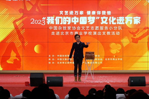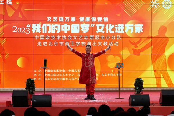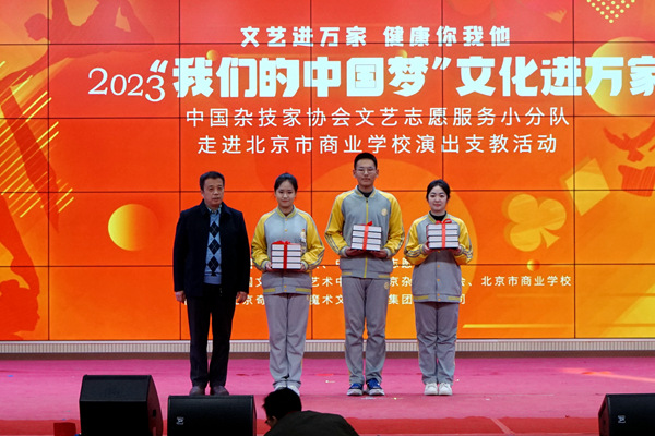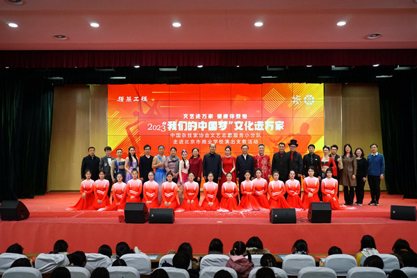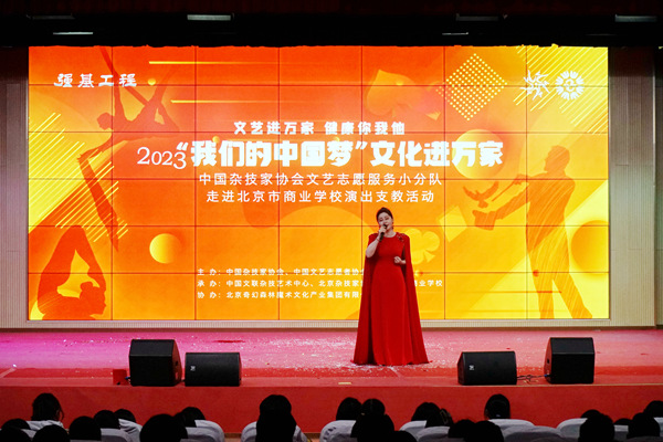 12月28日,中国杂协文艺志愿服务小分队走进北京市商业学校,开展2023“我们的中国梦”文化进万家演出支教活动。
