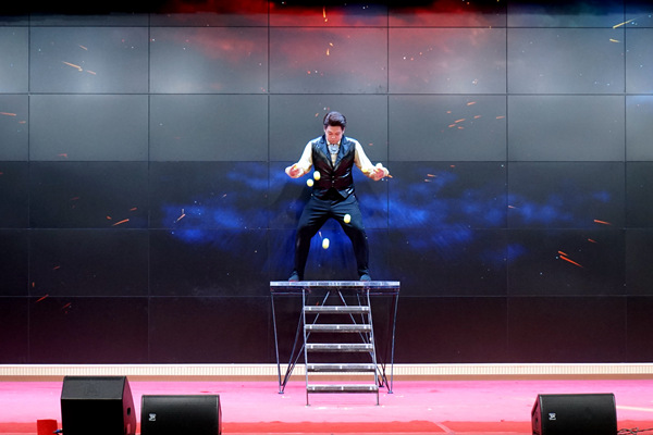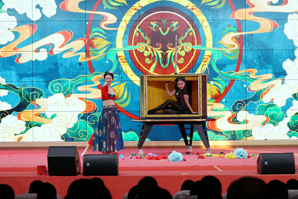 针对校园师生欣赏特点和需求,演出特邀中国杂技团、铁路文工团曲杂团的杂技节目,还邀请“文艺两新”北京奇幻森林魔术文化有限公司的魔术节目与北京市商业学校学生同台演出,丰富演出的表现形式,又彰显中华优秀传统文化蓬勃活力。演出在舞蹈《灯火里的中国》中热烈开场,文艺志愿者刘全和、刘全利、孙峥、刘思炜、陈建平、袁飞、韩莹、辛文、李臣鑫、沙文硕、马京利、郭皓炜、苑佳会等携滑稽《摄影爱好者》,杂技《节奏—球技》《心玲—空竹》《凝相思—男女软功》,魔术《逢花记》《麦克斯的奇迹》《查尔先生的皮箱》《宫廷戏法》《遥遥领先》《百变魔女》《相遇》轮番上演。演出在石梅演唱的杂技主题歌曲《中国杂技》中落下帷幕。