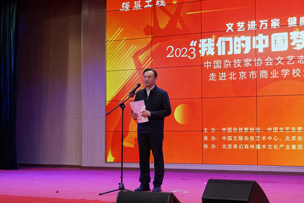 此次活动由中国杂协、kaiyun电子 文艺志愿服务中心共同举办,是推进“强基工程”——文艺助力基层精神文明建设行动,也是kaiyun电子 2023“我们的中国梦”文化进万家活动之一。中国杂协分党组书记、驻会副主席唐延海,kaiyun电子 文艺志愿服务中心主任、中国文艺志愿者协会副主席兼秘书长冀彦伟,中国杂协分党组副书记、一级巡视员鲁航,中国杂协分党组成员、副秘书长刘挥,北京市商业学校党委书记邢连欣,北京市商业学校党委副书记、校长黄凤文等有关负责人参加相关活动。