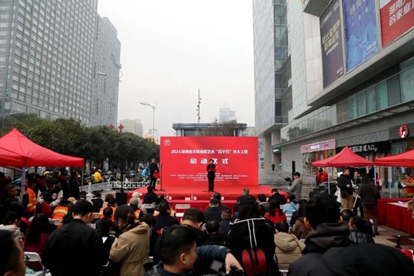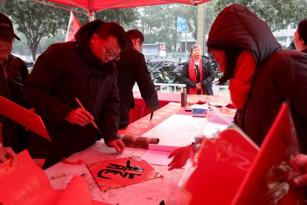 1月16日,湖南省文联春联艺术“百千万”光大工程活动在长沙市芙蓉区佳兆业广场前坪启动。湖南省文联党组成员、副主席张纯,湖南省文联党组成员、副主席倪文华,长沙市芙蓉区委常委、宣传部部长赵雪峰,芙蓉区委宣传部常务副部长李启杰,五里牌街道党工委副书记、办事处主任钟泽平,湖南省书法家协会、湖南省楹联家协会、湖南省文艺志愿者协会的艺术家,湖南省文联机关、芙蓉区、五里牌街道、燕山街社区干部职工,先进工作者代表、环卫工人代表、快递小哥代表和社区群众代表共200余人参加活动。启动仪式由倪文华主持。