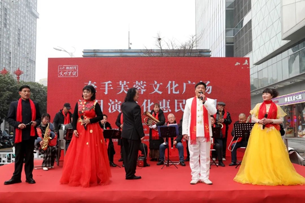 活动现场,除了开展写春联赠春联送福字的活动外,湖南省文艺志愿者协会“笑满三湘”文艺志愿服务团和五里牌街道群众还共同举行了一场文艺惠民演出。现场群众纷纷表示,感谢文艺家送春联送祝福,现场看节目看得非常开心,回去一定会把春联挂上,今年的春节一定会更加开心快乐、吉祥温馨。