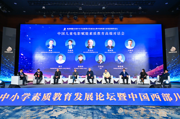在高端对话环节,主持人郑虎与冯恩洪、许还山、张阿利、方刚亮、阎宇、侯西科、吕星辰、陈俊斌等多位教育界、电影界专家学者及表演艺术家、青年电影人,围绕中小学影视教育的体系设计与构建、中小学影视教育的师资与人才培养体系、中国西部儿童题材电影创作的当下与未来等话题进行集中讨论。