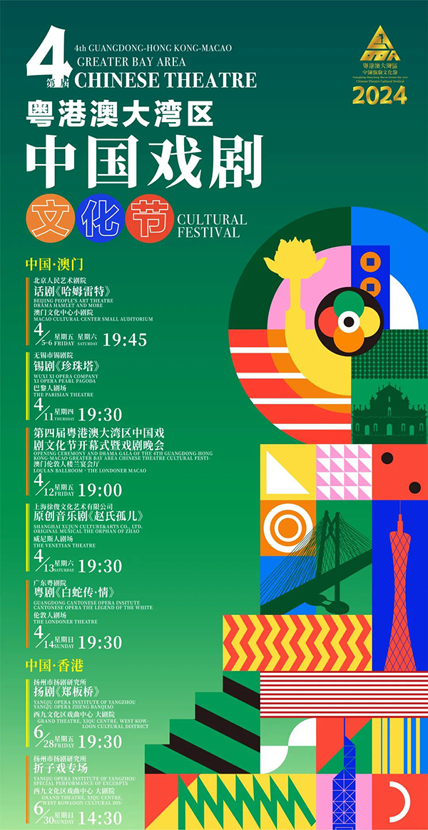 多元发展开新风,连台好戏聚澳门。2024年4月5日至14日,由中国戏剧家协会、粤港澳大湾区中华戏曲协会、香港大公文汇传媒集团主办的第四届粤港澳大湾区中国戏剧文化节将在澳门举行,并将于6月27日至30日在香港首次设立分会场。