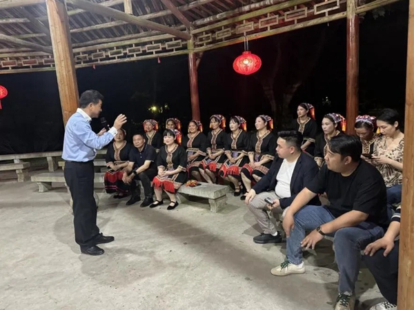 13日,采风团召开工作部署会,对该项工作提出要求。本次采风活动行程紧凑、内容丰富,采风团先后走进广恒团扇文化产业示范基地,了解这一全国“一县一品”特色文化艺术典型案例,感受非遗项目在推动文旅融合、助力乡村振兴中发挥的公益性作用;走进马岭新黎村,身临其境感受党建引领新农村建设、利用特色产业发展乡村旅游新模式对村容村貌村风民情的巨大提升作用;走进双江兰花种植示范基地,了解当地以兰花产业联农带农富农推进乡村振兴的奋斗历程;在非遗传习基地福建会馆观看当地曲艺表演,欣赏广西文场艺术魅力;走进荔浦特殊教育学校,与全国最美教师熊碧芳面对面交流,学习其扎根特殊教育几十年如一日,创新“康教结合”办学新思路,努力发展特殊学生职业教育,改变特殊孩子家庭命运的感人事迹;走进丰鱼岩,体验当地民俗文化与旅游产业相结合,走出以文塑旅、以旅彰文的具有鲜明荔浦特色文旅发展之路;走进荔浦市中国衣架产业体验展示中心,聆听当地衣架产业从小作坊生产逆袭成“中国衣架之都”的奋斗故事。采风团深入了解荔浦历史、人文、文化、产业,通过走、听、看、访收获了大量创作素材,为下一步定向创作奠定良好基础。