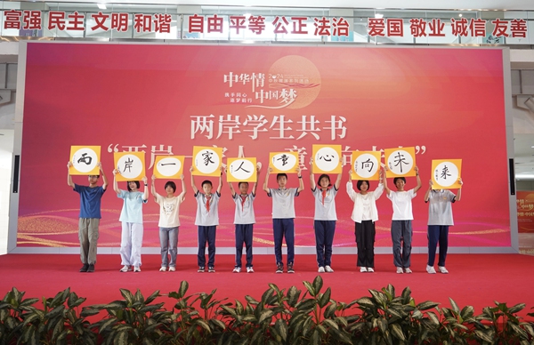 开幕式上,海峡两岸中学生展示了共同书写的“两岸一家人,童心向未来”书法作品,与会嘉宾共同为本次活动启动。