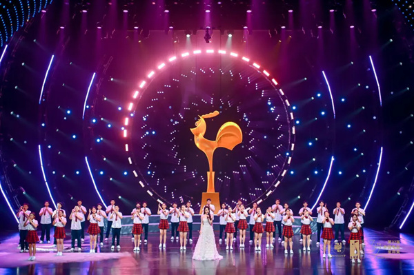 开幕式的舞台设计融入“电影是光影艺术”的理念,采用9000颗数控灯珠展现电影节主视觉,视觉效果梦幻灵动。演出分为时代之诗、人民之诗、艺术之诗三大板块,舞蹈《绽放》、阿卡贝拉《梦想清单》、音乐剧《唱响金鸡》、歌曲《走过世界的每个角落》、诗朗诵《祖国啊 我亲爱的祖国》和合唱《我爱你中国》等节目精彩纷呈。