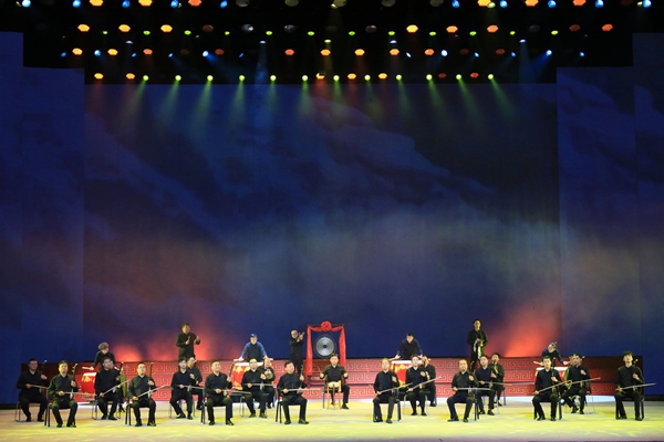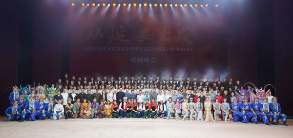 晚会在《山河铭记》的板胡声中拉开帷幕。眉户剧《十二把镰刀》选段、评剧《我那呼兰河》选段、京剧《杨靖宇》选段、豫剧《红灯记》选段、歌剧《沂蒙山》选段、昆曲《当年梅郎》选段、苏剧《国鼎魂》选段、京剧《沙家浜》选段、秦腔《杨门女将》选段、芭蕾舞剧《八女投江》选段、朗诵《为人民服务》、音乐儿童剧《遇见星海》选段等精彩节目依次上演。最后,在《黄河大合唱》慷慨激昂的歌声里,晚会落下帷幕。歌声仿佛穿越时空,回响于历史的浩荡洪流之中,唱出了“铭记历史、缅怀先烈、珍爱和平、开创未来”的奋勇之声。