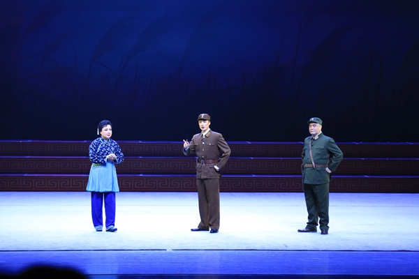 王蓉蓉、蓝天、韩巨明表演京剧《沙家浜》选段