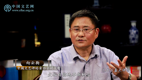 在接受《艺术公益大讲堂》专访时向云驹为我们介绍了这些年他在文艺理论批评上的成果以及在非物质文化遗产保护方面所做的贡献。向大家讲述了当代文艺工作者应如何立足于中华文化身份,建立真正的文化自信