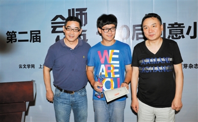 大赛状元谭帅从自己的启蒙者苏童手里接过证书。