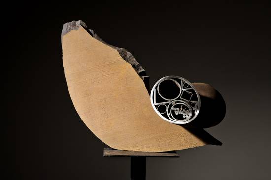 工业金属废料在阿绍特·哈鲁云殷的雕塑作品里经历了各种转换。几何元素既用来服务它所表达的重要意图,又把它转变成一种新的对象。承受现实的符号,然而,它有能力穿透大片因循守旧的领土和那些符号论。