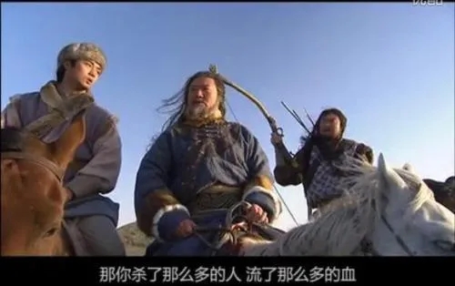 “靖儿,我所建大国,历代莫可与比。自国土中心达于诸方极边之地,东南西北乘马奔驰,皆有一年行程。你说古今英雄,有谁及得上我?”郭靖沉吟片刻,说道:“大汗武功之盛,古来无人能及。只是大汗一人威风赫赫,天下却不知积了多少白骨,流了多少孤儿寡妇之泪。”成吉思汗双眉竖起,举起马鞭就要往郭靖头顶劈将下去,但见他凛然不惧地望着自己,马鞭扬在半空却不落下,喝道:“你说什么?”