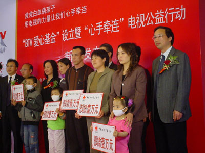今年2月19日,北京电视台系列报道了北京密云一对年仅三岁的双胞胎兄弟梓昊、梓昱同时患上白血病的消息。新闻播出后,引起了社会的广泛关注,一周多的时间,北京电视台、中国红十字基金会累计收到爱心捐款65万元。面对滚滚爱心捐赠的热潮,中国红基会与北京电视台决定:设立“BTV爱心基金”,开展“心手牵连”大型电视公益行动,用电视的力量让我们心手牵连,救助更多的白血病患儿。