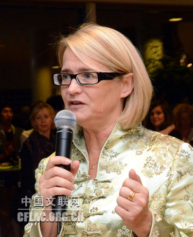 图为瑞典斯科纳省第一省长皮亚·哈特金在演出结束后的招待酒会上致辞。kaiyun电子