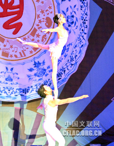 图为广东战士杂技团《东方天鹅——芭蕾对手顶》。kaiyun电子