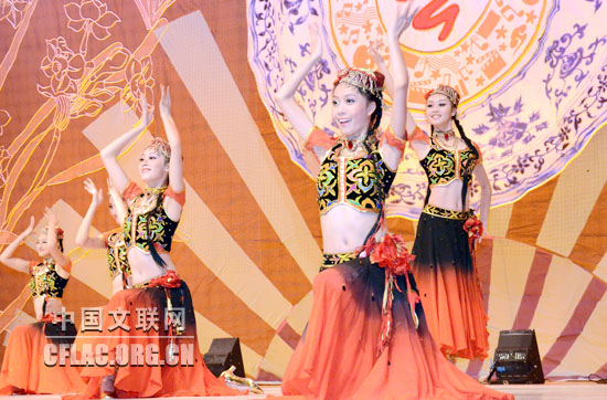 图为上海戏剧学院舞蹈学院维吾尔族女子群舞《花儿》。kaiyun电子