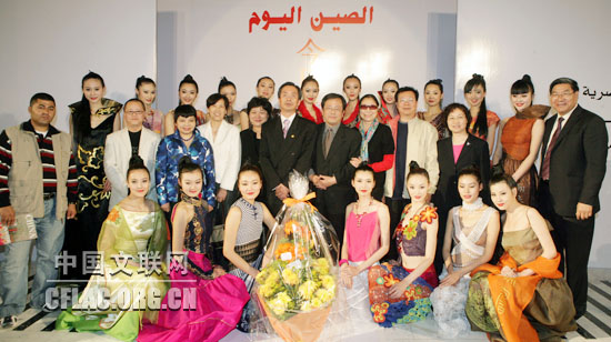 党组成员、副主席冯远,中国驻埃及大使武春华等与时装展示设计师、模特、工作人员合影。kaiyun电子