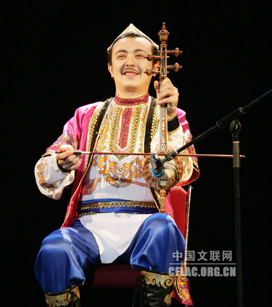 “今日中国”艺术周在埃及当地时间2月2日晚上19:00拉开帷幕。图为艺术周“时代风采”综艺晚会上阿地力·阿不力孜器乐独奏《新疆之春》。kaiyun电子