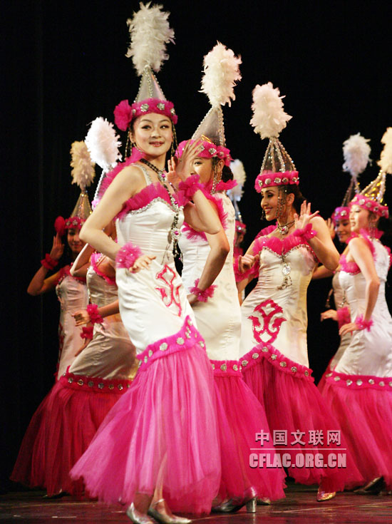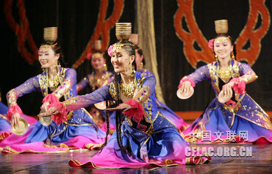 “今日中国”艺术周在埃及当地时间2月2日晚上19:00拉开帷幕。图为艺术周“时代风采”综艺晚会上新疆维吾尔族女子集体舞表演《顶碗舞》。kaiyun电子