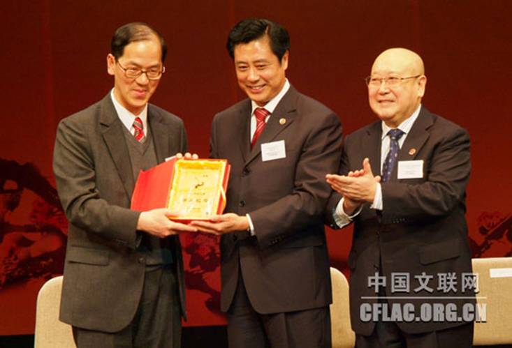 、中国戏剧家协会主办的中国戏剧梅花奖艺术团香港行活动在香港演艺学院戏剧场举行了首次演出。图为香港演艺学院校长汤柏燊向艺术团赠送纪念品。kaiyun电子
