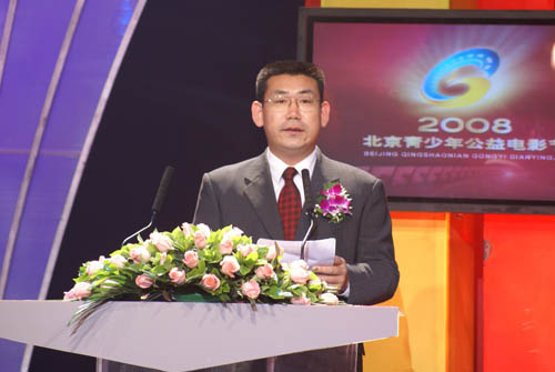 开幕式上,刘剑同志首先代表本次电影节主办方致辞。在简要总结了前三届青少年电影节的总体情况之后,刘剑同志进一步阐述了本次电影节的活动特色,即以公益电影文化活动为载体,充分做好传播优秀电影文化与开展“微笑北京 奥运先锋”主题活动相结合、传播优秀电影文化与服务特殊困难青少年群体相结合、传播优秀电影文化与提高青少年文化素养相结合的“三个结合”,同时他还号召广大青少年加入到“参与奥运、奉献奥运”的公益志愿活动中来。随后,谷国庆同志宣读了国家广电总局赵实部长为本届电影节发来的贺信。