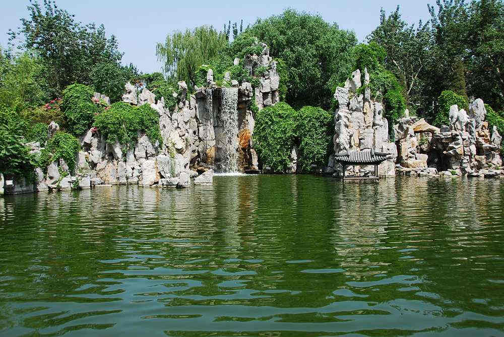 龙潭公园占地690亩,其中水面255亩。湖面被龙脊桥,双亭桥分为3部分,点缀有4个小岛、4个半岛、3个浅滩、1个峡谷、6个桥头绿地。沿湖以龙为主题,建有6个景区:龙吟阁景区是北方园林中独有的水上楼阁;龙潭景区由14座山峰组成,层峦叠嶂,瀑布从高14.5米、宽3米的山石上直泻而下;龙字石林景区由自然山石堆砌而成,石碑林立。它汇集了甲骨文、秦篆、金文,汉、晋、北魏、唐、宋、元、明、清及现代著名书法家和名人题的“龙”字,还有中国龙形的演变,共有龙字229个;荷塘花屿景区7、8月荷花满池,亭亭玉立,摇曳于涟漪荡漾的清波碧浪之上。龙门景区是公园入水口,“龙门”石壁上伸出一对汉白玉雕龙头,龙头喷水汇入轩前奇石环抱的龙池;万柳堂景区中既有腾空翻飞的威龙,又有精雕细琢的九龙解析,集文化与园林于一身。