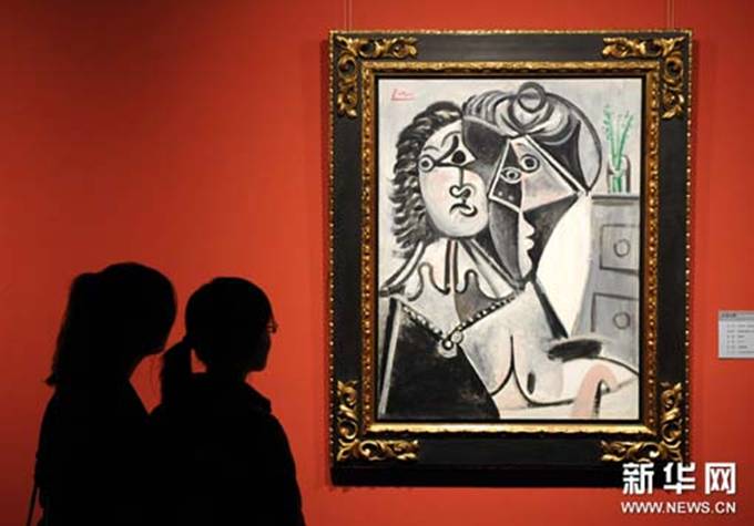 9月26日,观众在《走进大师》美展现场观赏西班牙现代艺术大师毕加索的油画作品《花瓶边的男人和女人》。当日,第五届亚洲美术馆馆长论坛在南京开幕,论坛专题展中的《时代多彩——第十一届全国美展江苏获奖及入选作品汇展》、《南北二石——傅抱石齐白石中国画作品展》、《走进大师——中国美术馆藏路德维希捐赠作品展》三大美术展览同时在江苏省美术馆举行,来自中外美术家的400多件作品给观众带来美的享受。第五届亚洲美术馆馆长论坛共有来自中国、日本、韩国、新加坡、印度等10多个亚洲国家和地区的46家美术馆以及美国、德国、澳大利亚等国观察员美术馆的馆长、专家参加。