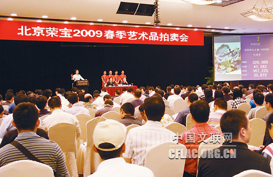 2003年至2009年为第三阶段,是中国艺术品拍卖市场加速发展的时期。在这一时期,中国艺术品拍卖市场除了在经营机构的数量、经营范围的种类、拍卖业绩的提高等诸方面继续保持快速拓展的态势之外,在经营模式上也与全球艺术市场进一步接轨,并以北京、上海为核心形成了所谓中国艺术品拍卖市场的中心化发展态势。