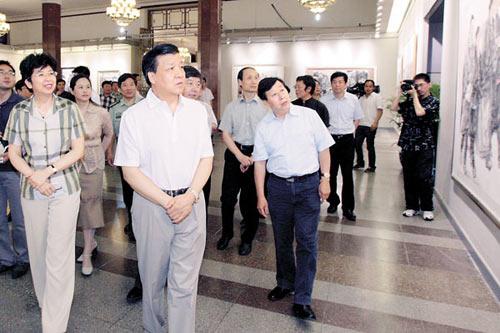 中共中央政治局委员、中央书记处书记、中宣部部长刘云山同志参观了西藏和平解放60周年美术作品展 摄影孟祥宁