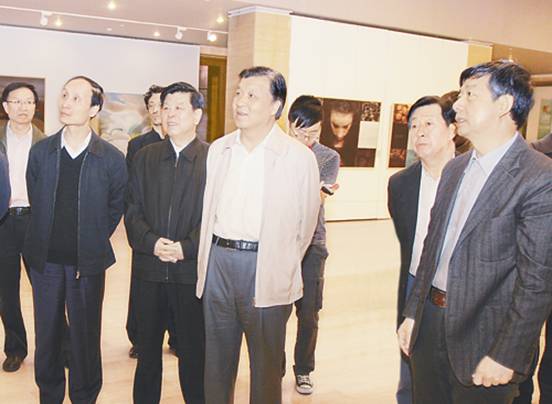2010年10月25日中宣部刘云山部长在中国美术馆观看“第四届北京国际美术双年展”作品。有85个国家,550件作品参加了大展