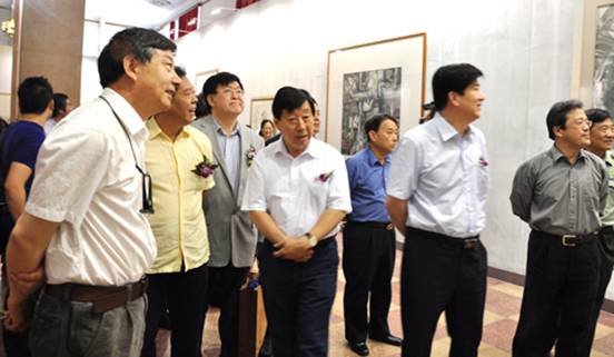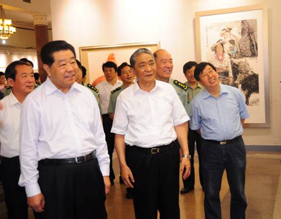 赵实书记观看“庆祝建党90周年全国美术作品展览。此展2010年5月开始筹备,组织100余名知名画家分赴井冈山、延安、会宁等7个革命纪念地写生创作